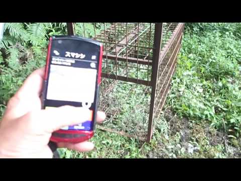ずいぶんと発売開始が遅れている、スマホによるイノシシ捕獲用遠隔箱ワナ装置の撮影をしている。
